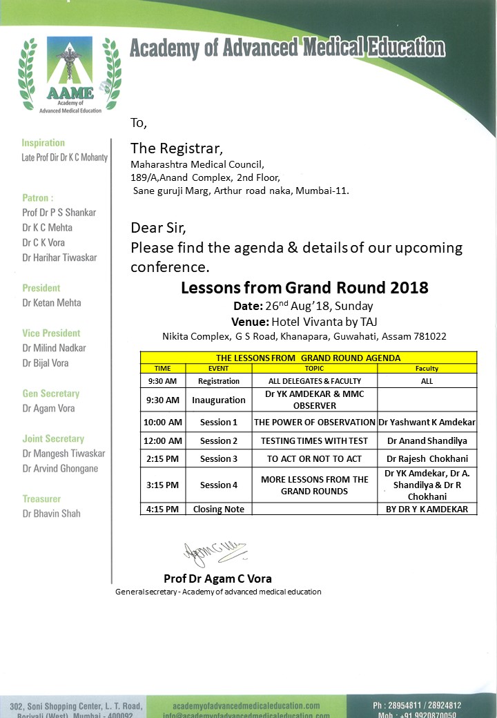 Report on The Lessons from Grand Round July 22, 2018 / Lucknow MMC Approval / Report