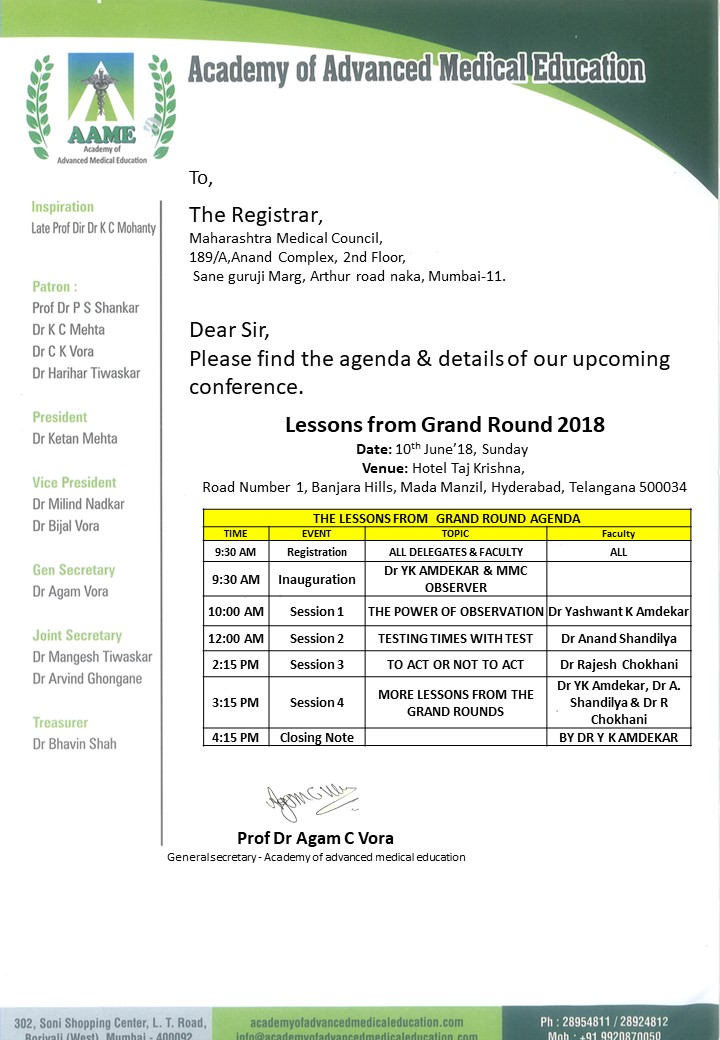 The Lessons from Grand Round 2018 June 18, 2018 / Hyderabad Brochure